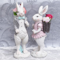 バスケットを背負った うさぎの男の子と女の子の2個セット。